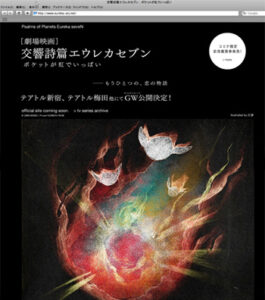 2009年GWに公開される 劇場版 「交響詩編エウレカセブン」 作中挿入画を弊社で数点描かせていただきました。 冬コミで先行限定チケット販売が行われます。 http://www.eureka-prj.net/ よろしくお […]