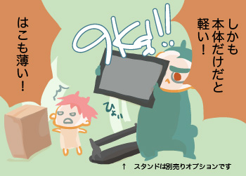 本体のみでも自立しますし、モニターアームでのご使用も可能です